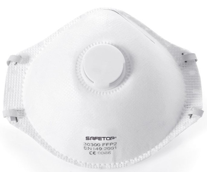 Las mascarillas autofiltrante Climax han sido diseñadas para retener de forma eficaz partículas de polvo en suspensión, nieblas y humos. Son muy ligeras, cómodas y ofrecen una resistencia muy baja a la respiración. Los tipos de aplicación del modelo 1720-V FFP2 NR son: lijado de capas de pintura y recubrimientos, raspado y lijado de adhesivos, corte y perforación de madera, humos procedentes de la soldadura, gestión de residuos, fumigación de pesticidas (base acuosa), alimentación de animales. - Bandas de ajuste sintética. - Clip nasal ajustable. - Válvula de exhalación - Material interior suave - FFP2 NR